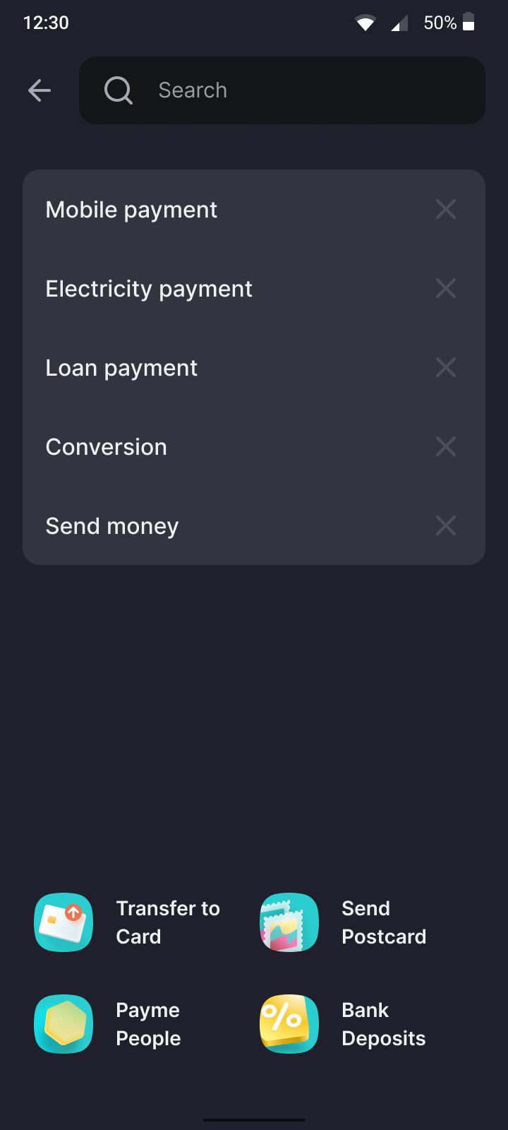 Photo scannerSearch systemCinema ticketsFavorite paymentsCustomizationRecommendations
